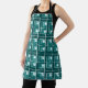 This apron has a geometric design made from Ls in shades of teal laid in different directions repeating across the design.