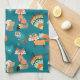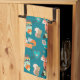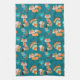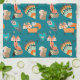 This attractive hand towel features a colourful pattern of cute fox images wearing boho style tribal attire. Along with the fox images are images of a tribal feather, leaf, and little brown squirrel. There is also a teal and pink heart arrow. The images are placed on a darker teal background.