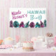 Tropical berry pink and teal green birthday banner is a bold way to say happy Hawaii 5-0. Vibrant monstera leaves and ferns are colourful for a festive 50th birthday party. Tropical teal green and berry pink leaves are versatile for a variety of coastal themed celebrations.