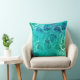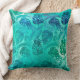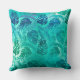 Teal Tropical Palm Leaf Pattern Throw Pillow