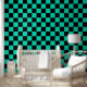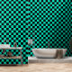 Teal Turquoise and Black Chequered Pattern Wallpaper