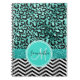 Teal Turquoise Faux Glitter Leopard Print Monogram Notebook