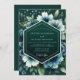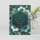 A dramatic and elegant mood is set against a deep, dark backdrop. Luminous white and teal anemone blossoms beautifully contrast with moody hunter green and slate blue tones. Soft green foliage and delicate blue berries add depth and texture to the painterly floral arrangement, evoking the enchanting beauty of a twilight bloom.