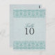 Elegant Wedding table number card that can be customized for your special day. Features a teal vintage damask design on a soft blue background. matching products in the chasing the wolf store. Graphics by Shery K Designs www.mygrafico.com