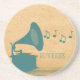 Quirky and unique Vintage Gramophone Sandstone Coaster in teal featuring a silhouette of an old-fashioned gramophone and a cascade of musical notes on a digital art rendered paper background. This chic sandstone coaster will protect your furniture with vintage flair and is perfect for any music lover. Easy to customize, simply personalize with the text of your choosing. Click on the "Customize It" button to find additional personalization options.