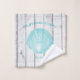 Add an elegant touch to your bath decor with a set of Teal Vintage Scallop Shell Bath Towels. Towel design features a vintage scallop shell and custom text for you to personalize with your family name against a wooden background. Additional home decor items available with this design.
