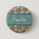 Elegant and modern Vintage Zinnia Button featuring a pretty textured floral background and an alluring turquoise two-toned banner. Easy to customize, simply add the personalized text of your choosing in the text field provided. Click "Customize It" button to find additional personalization options.