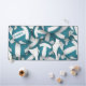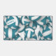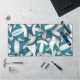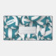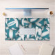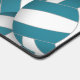 This cool volleyball themed desk mat features varied size teal and white volleyballs turned every which way in a 3D-look pattern overlying a volleyball net detail accent graphic - background is customizable white - personalize the athlete's name at the upper left corner on one of the volleyballs in the pattern - by katz_d_zynes