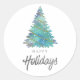 Teal Watercolor Happy Holidays Christmas Tree Classic Round Sticker