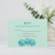 A wedding RSVP with teal roses painted with watercolors. Chic and stylish. Mint green background.