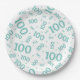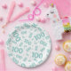 Teal/White 100th Birthday Party Number Pattern Paper Plate