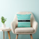 Teal White Chevron ZigZag Black Name Monogram Throw Pillow