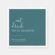 This teal white eat drink we're married wedding napkins are perfect for a rustic wedding. The design features a beautiful calligraphy font in a teal background.