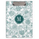 Teal & White Floral Monogram Clipboard
