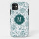 Teal & White Flower Pattern Monogram Case-Mate iPhone Case