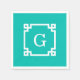 Teal White Greek Key Frame #2 Initial Monogram Napkin