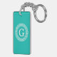Teal White Greek Key Round Frame Initial Monogram Keychain