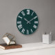 Teal White Grey Metallic Silver Roman Numbers Large Clock