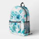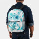 Teal White Liquid Swirls Abstract Monogram Name Printed Backpack