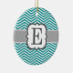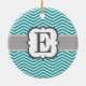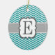 Teal White Monogram Letter E Chevron Ceramic Ornament