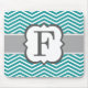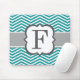 Teal White Monogram Letter F Chevron Mouse Pad