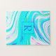 Teal White Pink Waves Monogram Abstract Patterns Jigsaw Puzzle