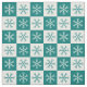 Teal White Snowflake Checkered Pattern Fabric