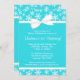 Teal White Snowflakes Bow Winter ONEderland Invitation