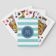 Teal White Stripes Pattern, Navy Blue Monogram Playing Cards