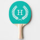 Teal White Wheat Laurel Wreath Initial Monogram Ping Pong Paddle