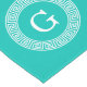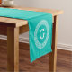 Teal Wht Greek Key Rnd Frame Initial Monogram Short Table Runner
