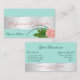 Teal with Silver Decor and Gorgeous Rose Flower Business Card
