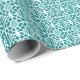Teal With White Crochet Lace Pattern Wrapping Paper