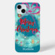 This retro Christmas phone case has a hand painted aluminum teal wreath with classic retro ornaments, starburst and atomic symbols. This is a midcentury modern styled Christmas case is perfect to celebrate the holiday season. You can personalize this phone case with your own holiday greeting, name and background colour to match your style.