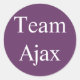 A purple "Team Ajax" sticker set. There were two men in Greek myth called Ajax. The first was "Ajax the Greater", who fought in the Trojan war and killed himself after Odysseus was awarded the shield and sword of Achilles. The other was "Ajax the Lesser", who eventually drowned after angering Athena and Poseidon.