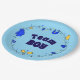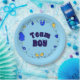 Keep your theme perfectly coordinated with these adorable “Team BOY” paper plates, designed to match your “He or She? Toss to See!” gender reveal cornhole game. These blue plates feature a sweet circular design with baby bibs, clothes, hats, and baby chicks surrounding the bold "Team BOY" message at the centre. Ideal for serving cake, snacks, or party bites, they add a fun and festive touch to your gender reveal celebration. Pair with matching “Team GIRL” items or mix and match for a balanced and photo-ready party setup!