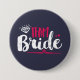 Team bride button. Perfect for bridal shower and bachelorette party accessories before the wedding. Navy blue, white and pink with diamond and small hearts. Background colour can be customized to your desired colour theme. This pin is for the bridesmaid, maid of honour, bride's families and friends.