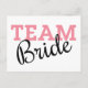 Let everyone know who's team you're on with this Team Bride pink script postcard. Perfect for bachelorette parties and other wedding events.