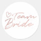 Un très joli autocollant avec un faux script rose en or pour l'équipe mariée. Ce sera l'idéal pour les douches nuptiales, les fêtes d'enfants, les fêtes de bachelorette et autres événements mariages. Cette conception est disponible dans d'autres titres.