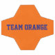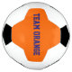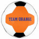 Soccer ball with parts in dark blue and orange with custom text design "Team Orange. Easy to customize it now with your own team name / your city/ club logo etc . Design by Alma Wad.