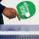Typographical slogan ping pong bat in green and white. Reads: Teamwork makes the dream work. Ideal for doubles who need to work together as a team or for team events. Uniquely designed by Sarah Trett.