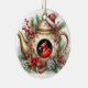 Teapot Birdhouse Cardinal 6 Ceramic Ornament