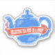 Invicta illustration of a teapot, drawn in the colours of the Union Jack flag. A design for anyone who loves to drink tea. The teapot has a ribbon on it with the text collecting teapots is a sport.