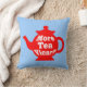 Teapot - More tea Vicar? - Red and White on Blue Throw Pillow