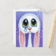 Sad but cute postcard featuring an illustration of a crying white rabbit. The bunny rabbit has a heart shaped pink nose and big tear filled eyes. Artwork © Lisa Marie Robinson. All rights reserved.