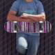 An abstract design made up of abstract textured lines somewhat reminiscent of circuitry contacts e.g. the pins on computer memory modules.
