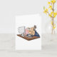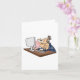 A tech support worker at a desk blowing a bubble. This design looks really effective on these Greeting Card