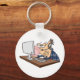 A tech support worker at a desk blowing a bubble. This design looks really effective on these Keychain