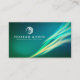 This elegant professional technical engineering business card features green hued light flows streaking from the lower left to the upper right corner over a green background. Your business name and text appear in on the upper left quadrant of the front, just below your business logo. Your other contact details and business logo appear on the back of the card. Perfect for computer, engineering, technical, technology, internet, online, web, it, information technology, computer repair, computer services, themes.