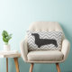 Teckel sur le chevron gris et blanc - coussin